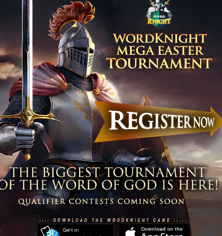 In a world where knowledge is your sword and faith is your shield,Armour up, as you test your knowledge of the Word of God in a challenging yet exciting spiritual journey to knighthood". Introducing 'WordKnight Bible Game App 2.0, with new and exciting features such as Challenge the leaderboard, Battle Quiz, Realtime Live Tournaments group play