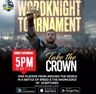 In a world where knowledge is your sword and faith is your shield,Armour up, as you test your knowledge of the Word of God in a challenging yet exciting spiritual journey to knighthood". Introducing 'WordKnight Bible Game App 2.0, with new and exciting features such as Challenge the leaderboard, Battle Quiz, Realtime Live Tournaments group play