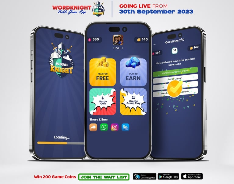 WordKnight game is an engaging and spiritually enriching mobile game that combines faith and knowledge in a captivating way. Players take on the role of a WordKnight, embarking on a quest to answer questions based on the history of the Bible, Pastor Chris messages, the Old and New Testaments, Rhapsody of Realities articles, and 'Your LoveWorld' episodes.