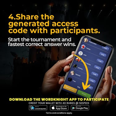 When a tournament is live or scheduled, it will appear in the Tournaments section of the app. Simply select the tournament you want to participate in and confirm your entry. Once the tournament begins, you’ll answer questions in real time, earning points based on accuracy and speed.